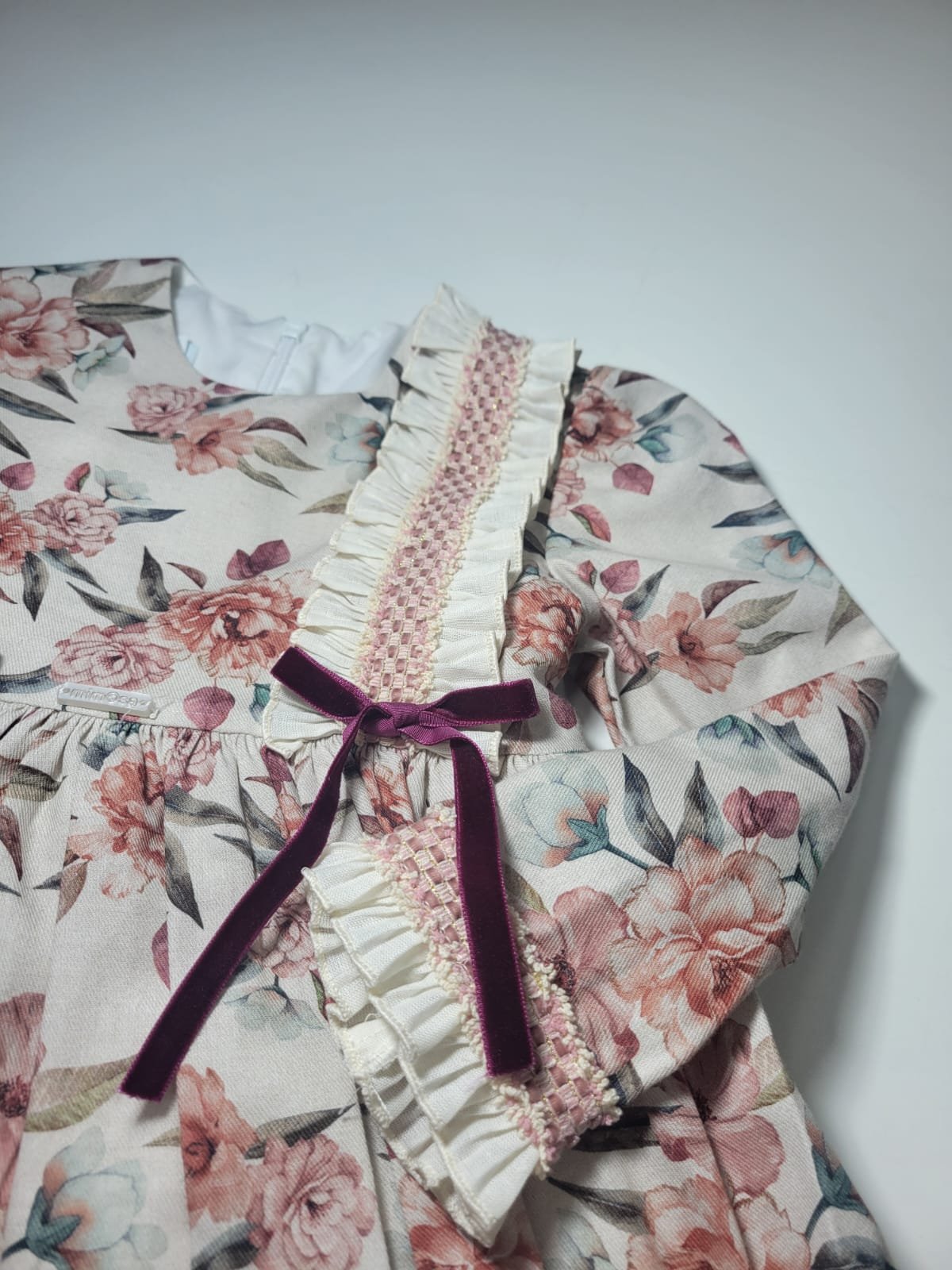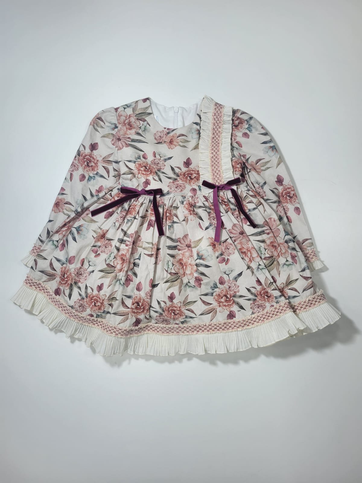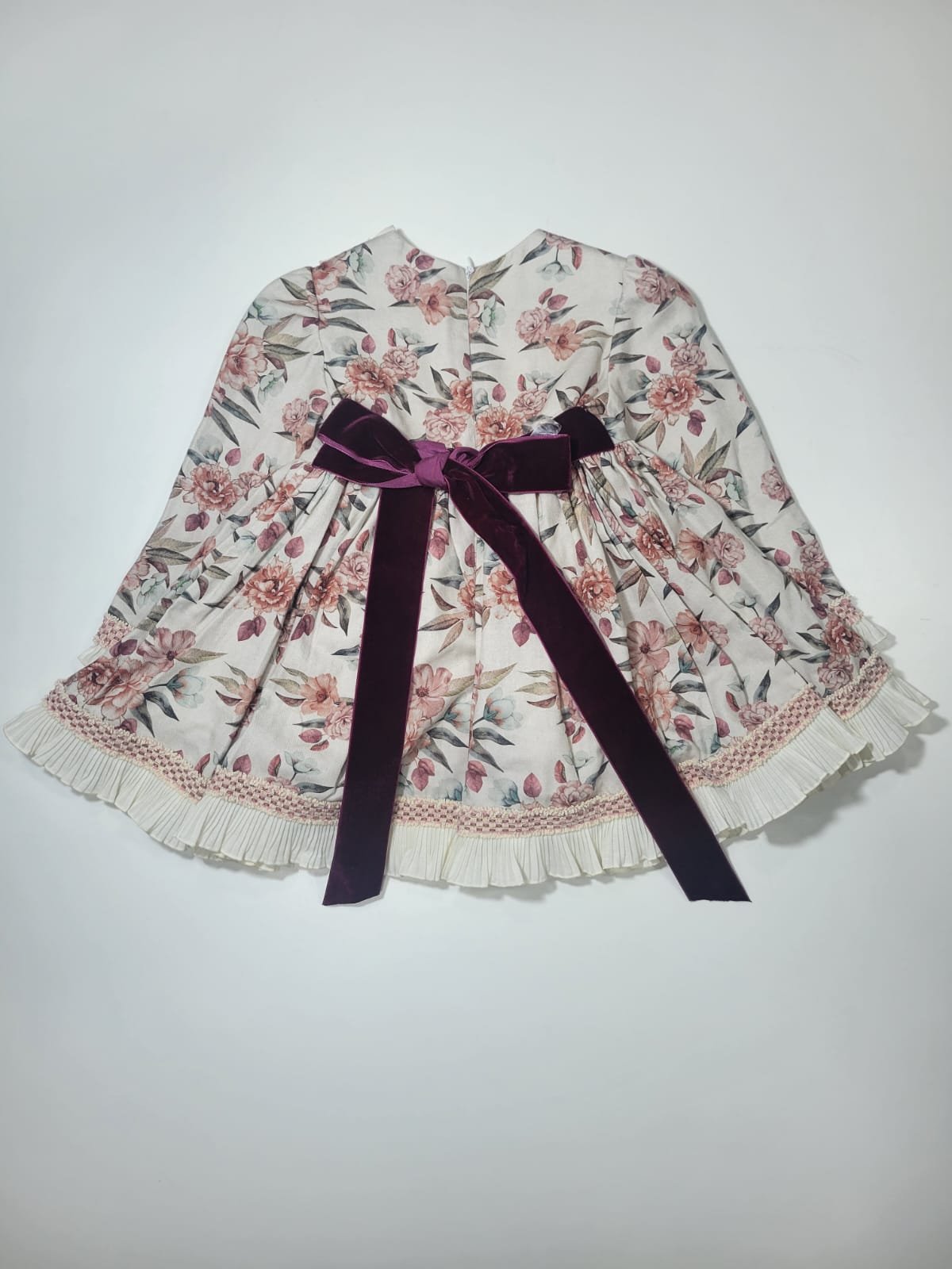 Design: Padrão Floral com detalhes de renda no peito e borda do vestido, pequenos laços na parte frontal e traseira