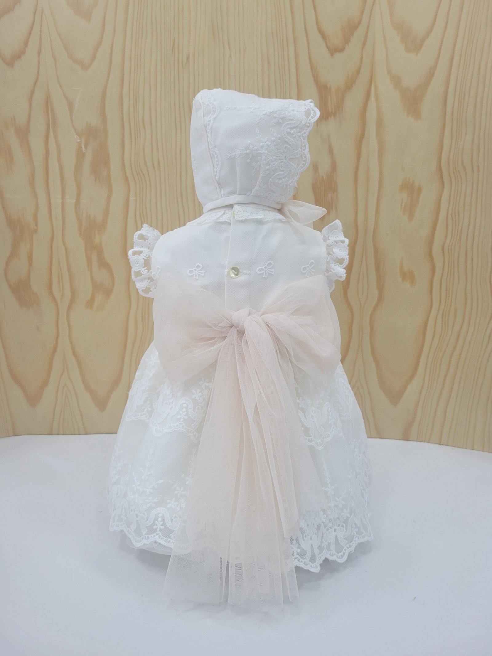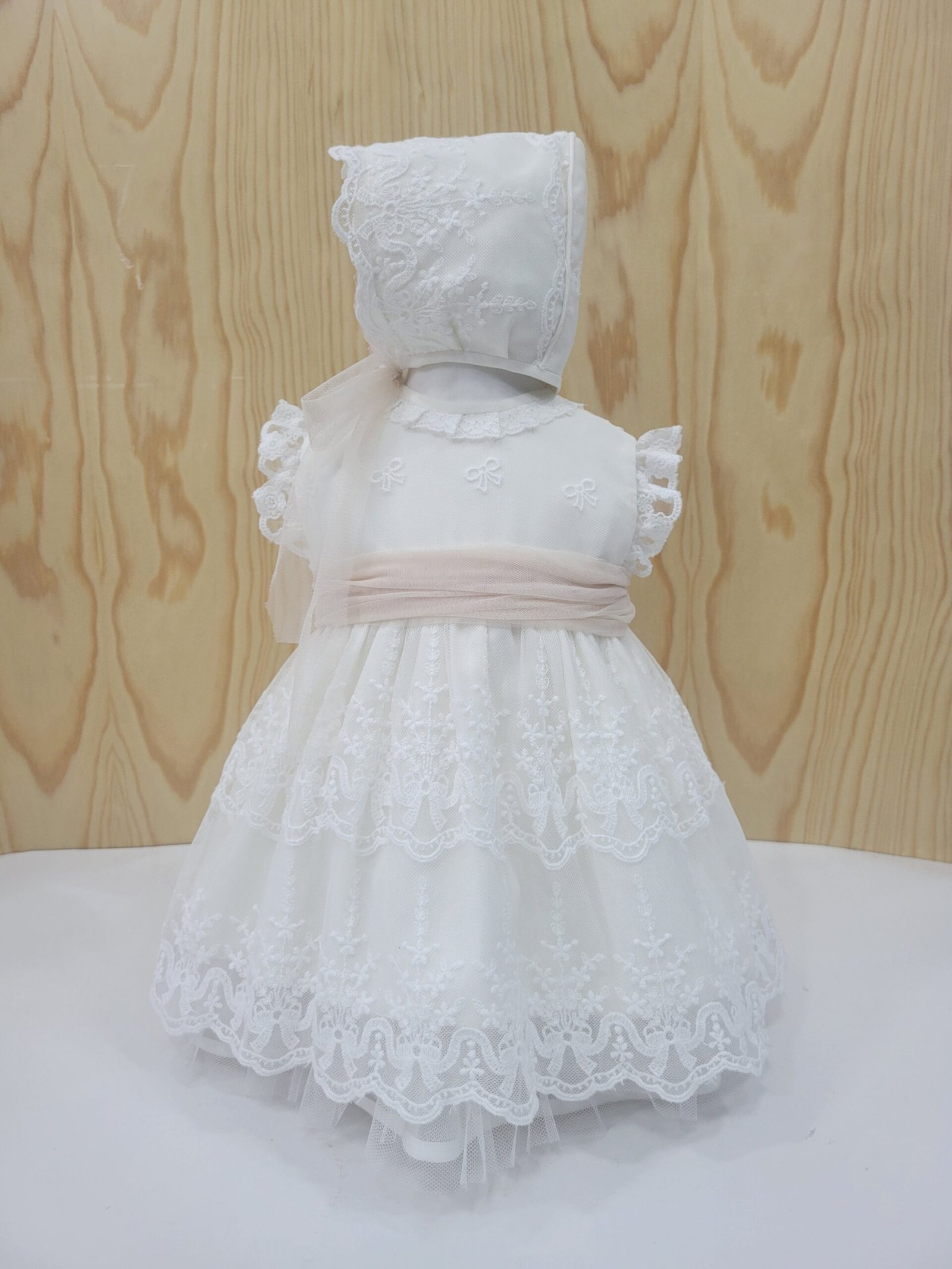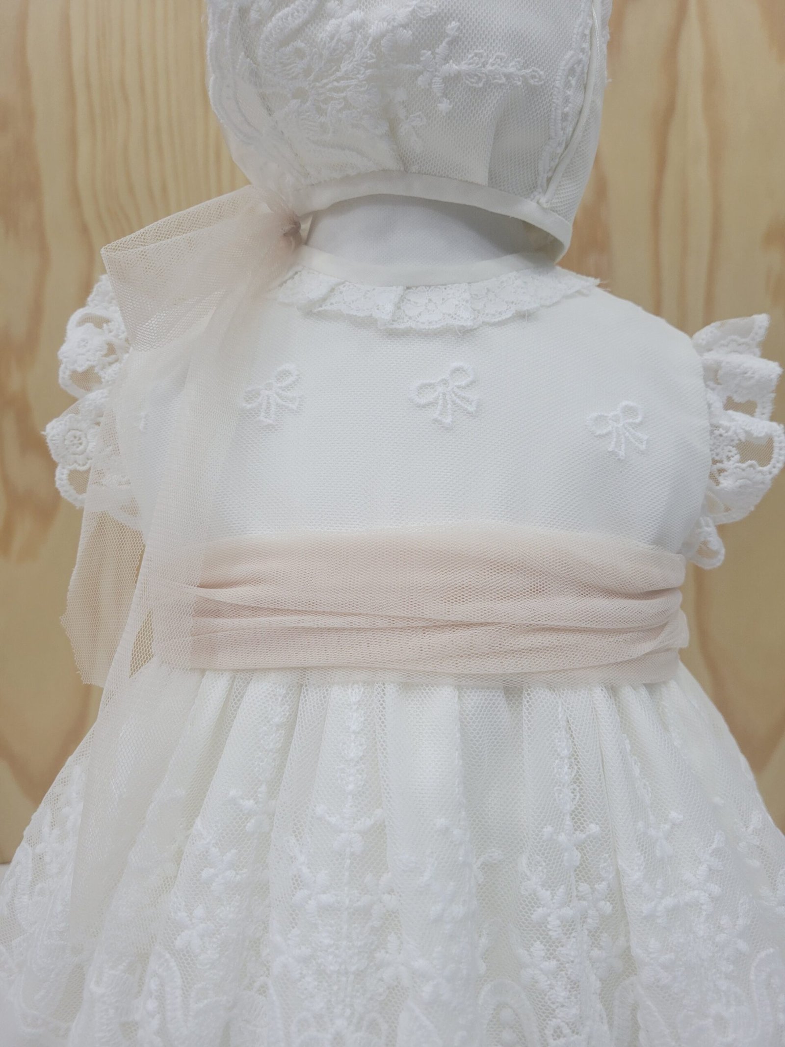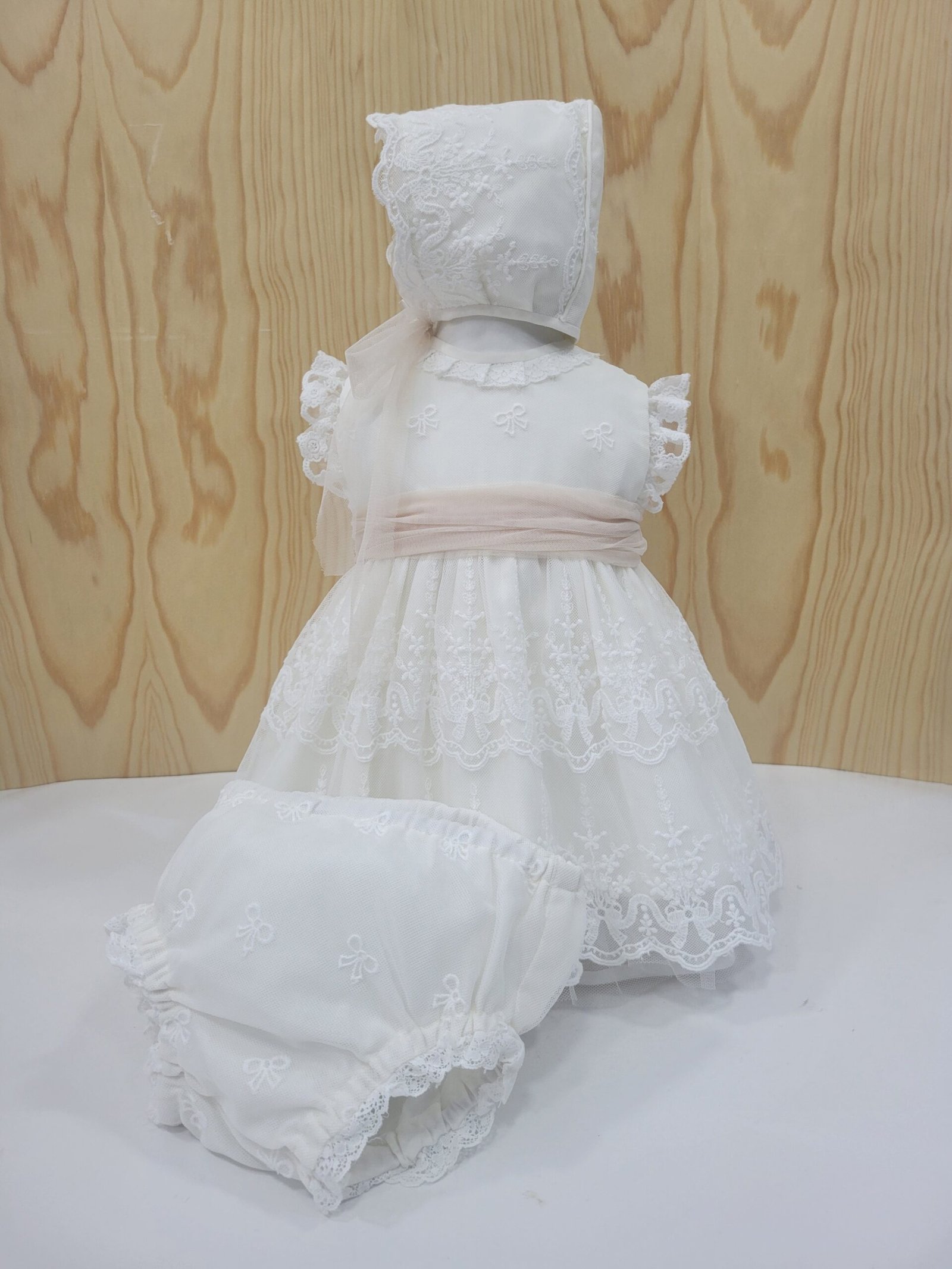 Design: Detalhes com padrões rendados no corpo, mangas, capota e braguita, e laços decorativos