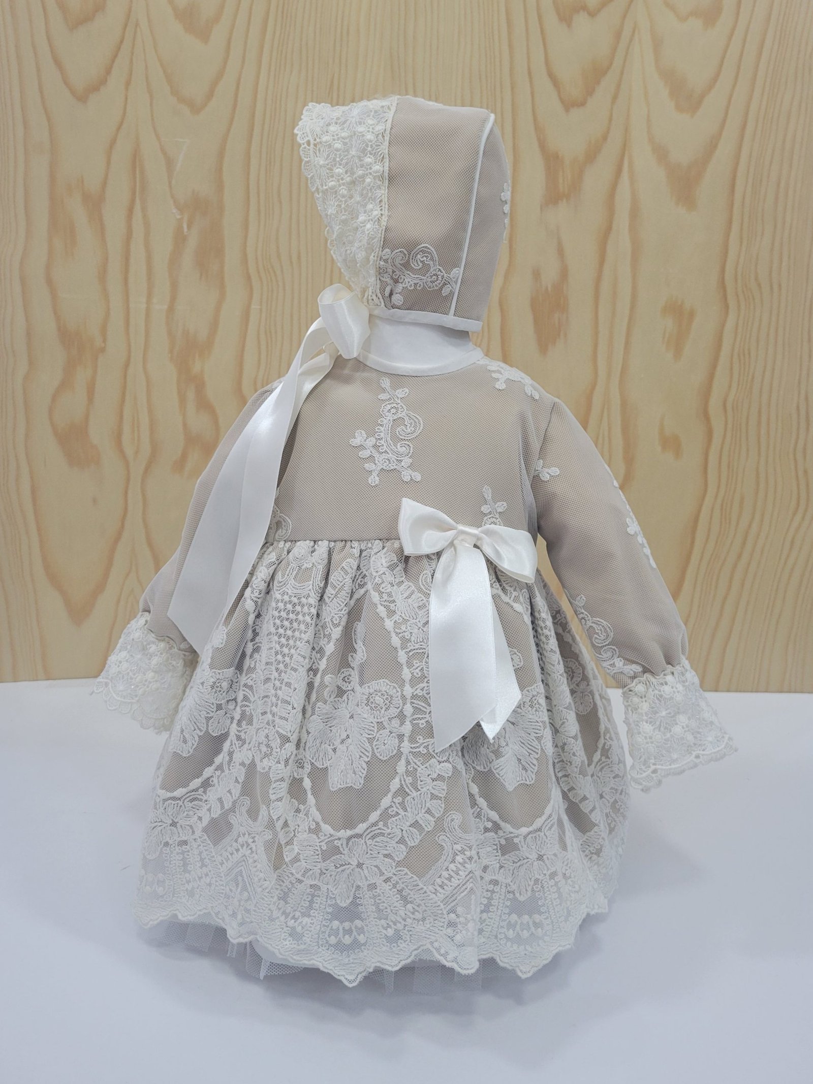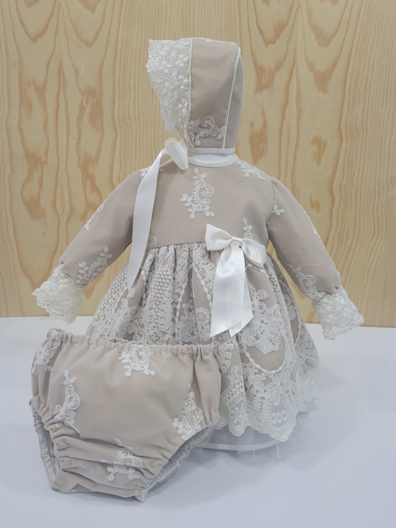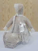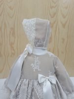 Design: Detalhes com padrões rendados no corpo, mangas, capota e braguita, e laços decorativos