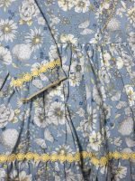 Design: Padrão floral com detalhe nas mangas em amarelo e folhos na parte do peito, dando um toque sofisticado e moderno