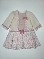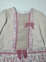 Vestido Bege com Padrão Floral Rosa