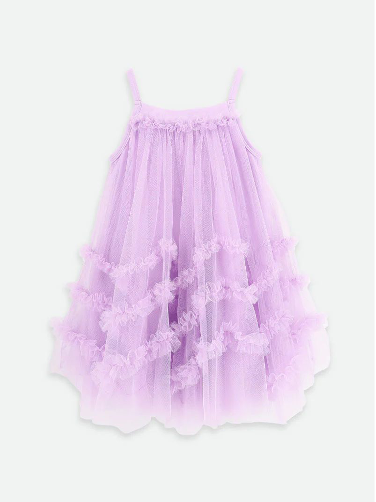 Vestido Lilás Multicamada com Laço Decorativo