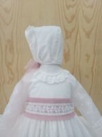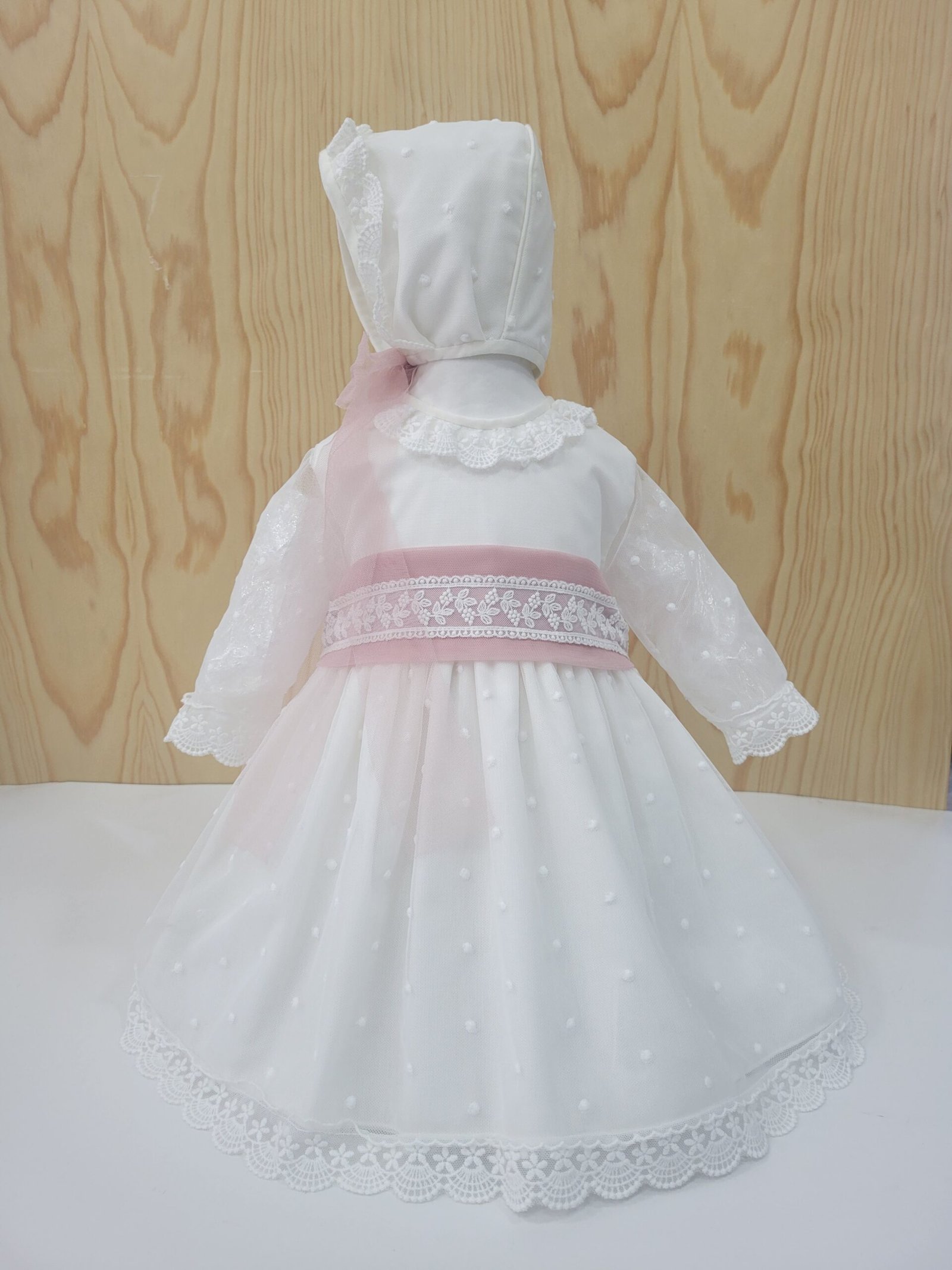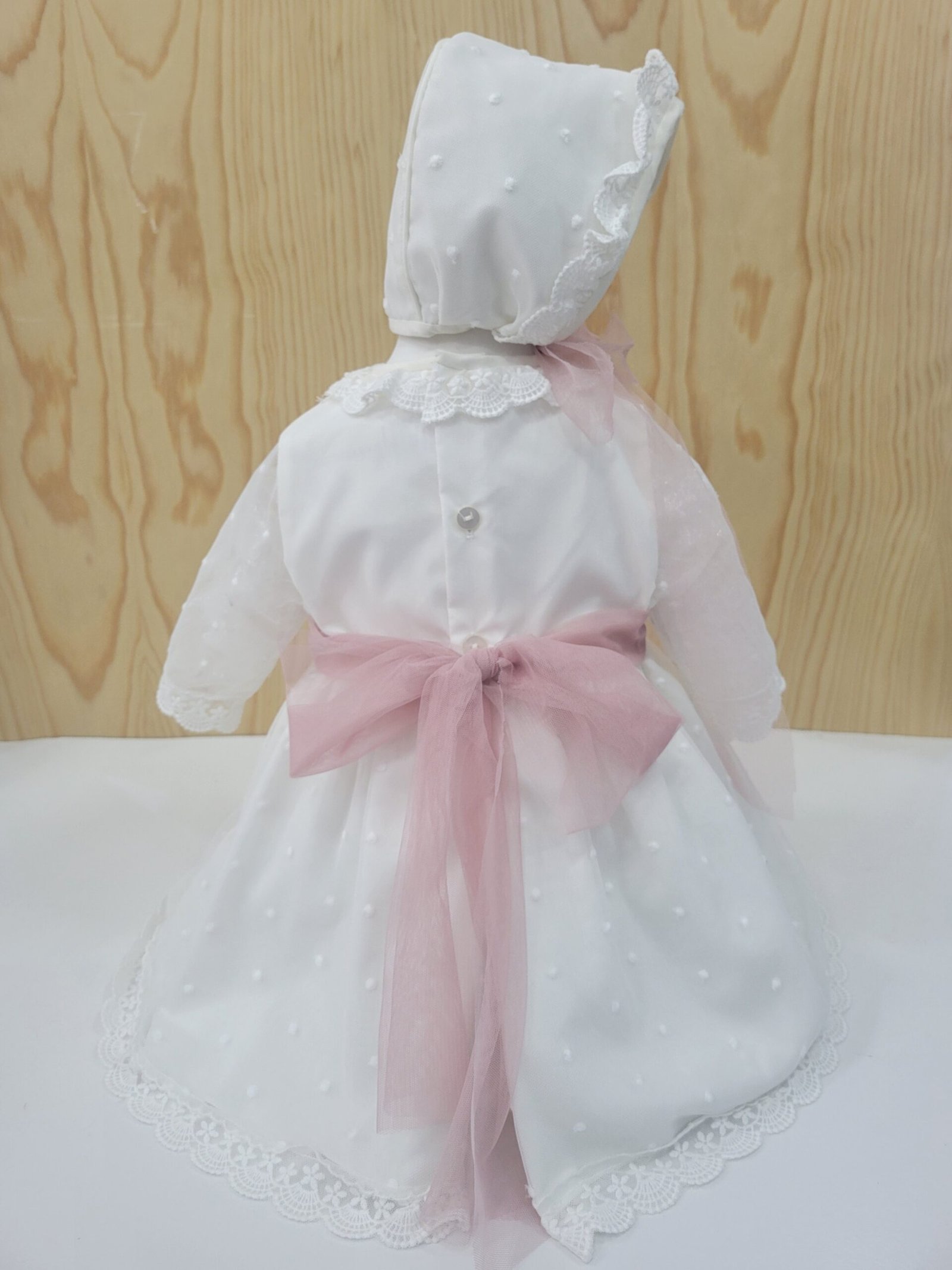 Design: Detalhes com padrões rendados no corpo, mangas, capota e braguita, e laços decorativos