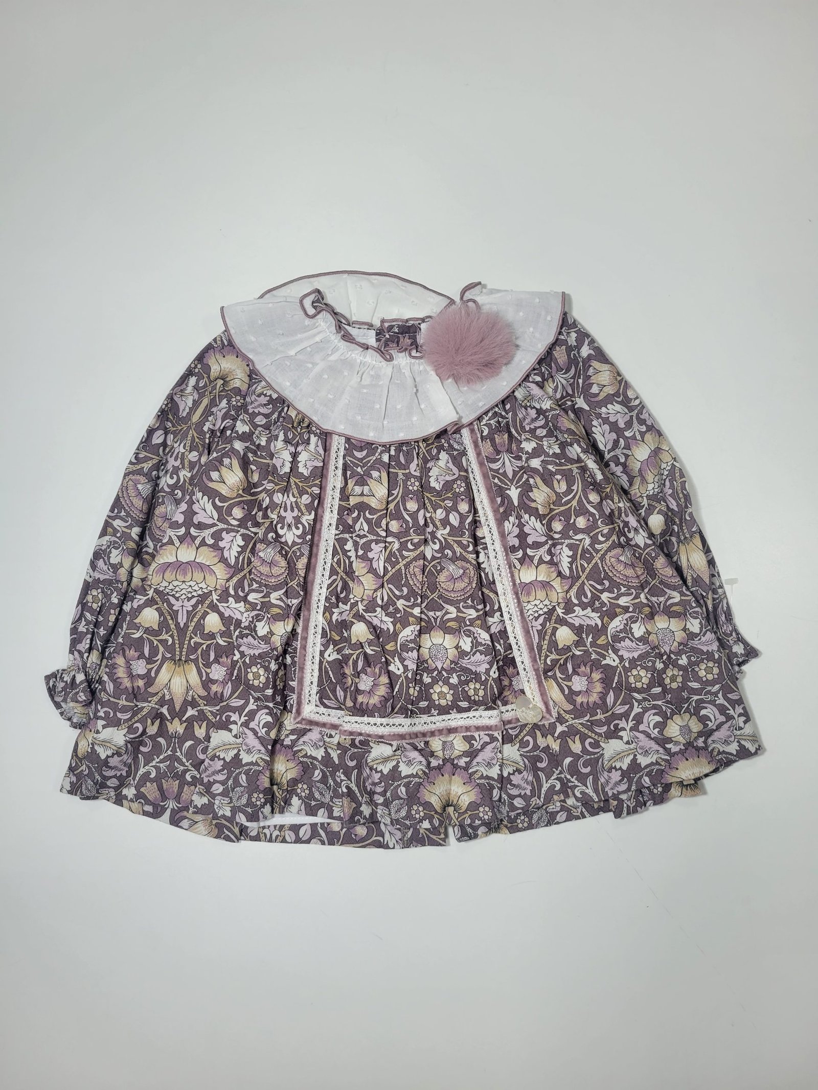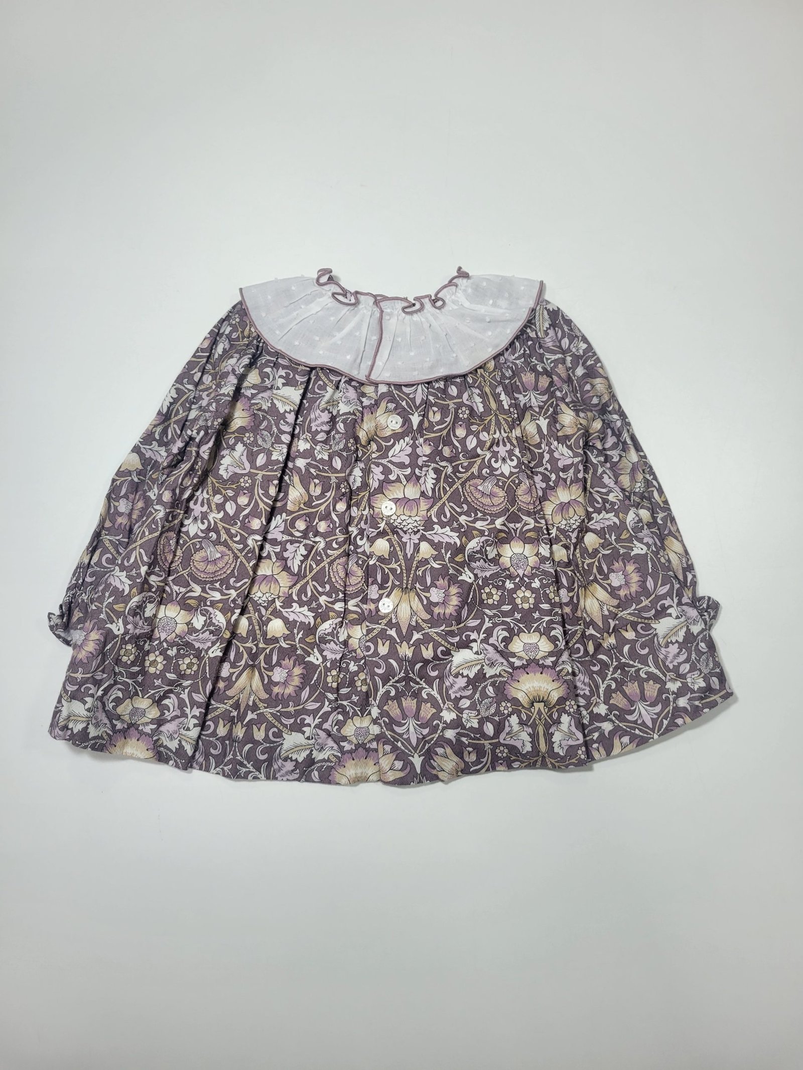 Design: Padrão floral com detalhe de listra branca na parte frontal e gola em tule, dando um toque sofisticado e moderno.