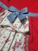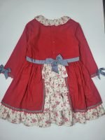 Ajuste: Mangas compridas, gola redonda em tule, laços nas mangas, laço e botões na parte traseira para facilitar o vestir e folhos no estilo espanhol