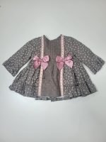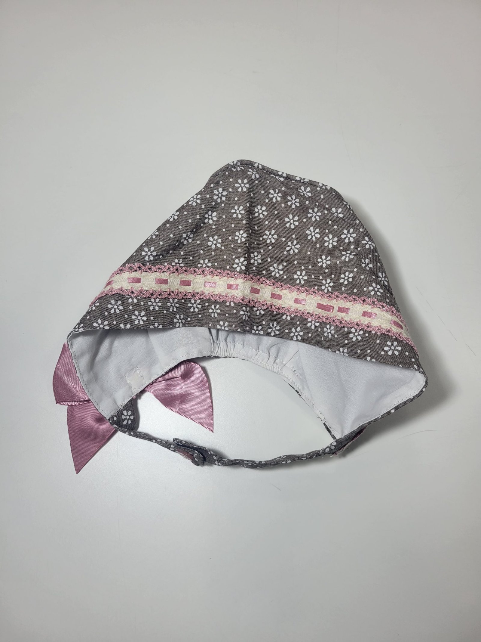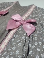 Design: Duplo padrão floral e pontilhado múltiplos laços decorativos e faixas bicolores, dando um toque criativo e excêntrico