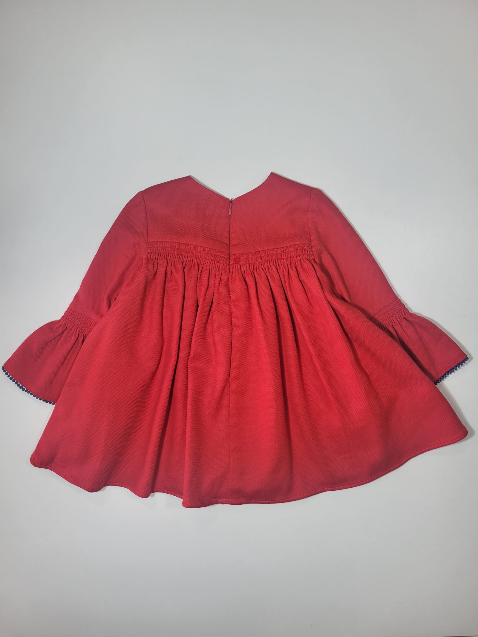 Cores: Vermelho com pormenores azuis