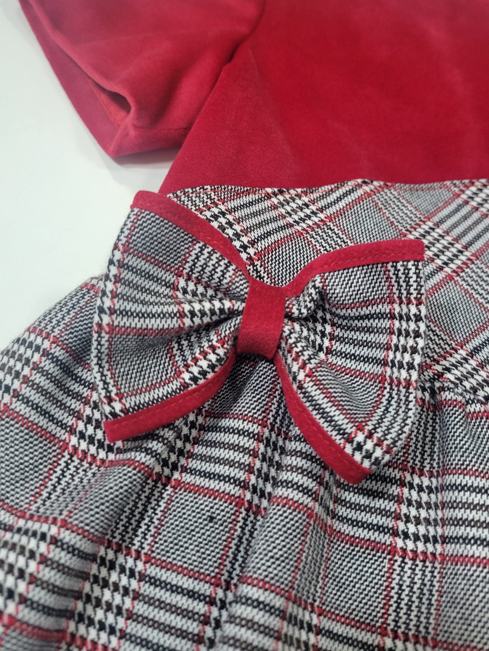 Design: Design criativo bicolor com padrão em xadrez e detalhe de um laço na cintura