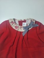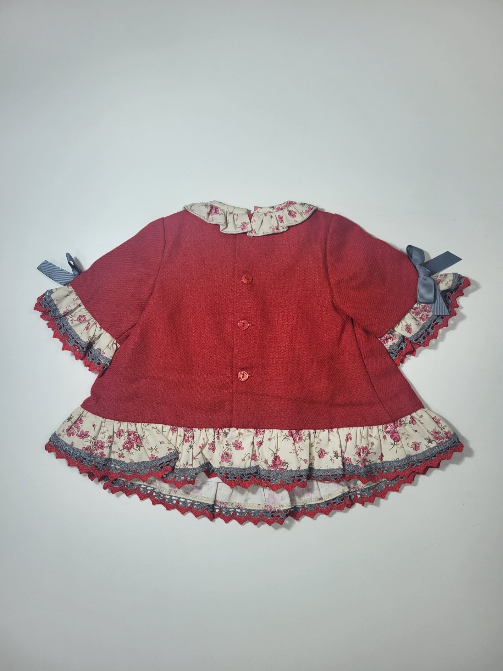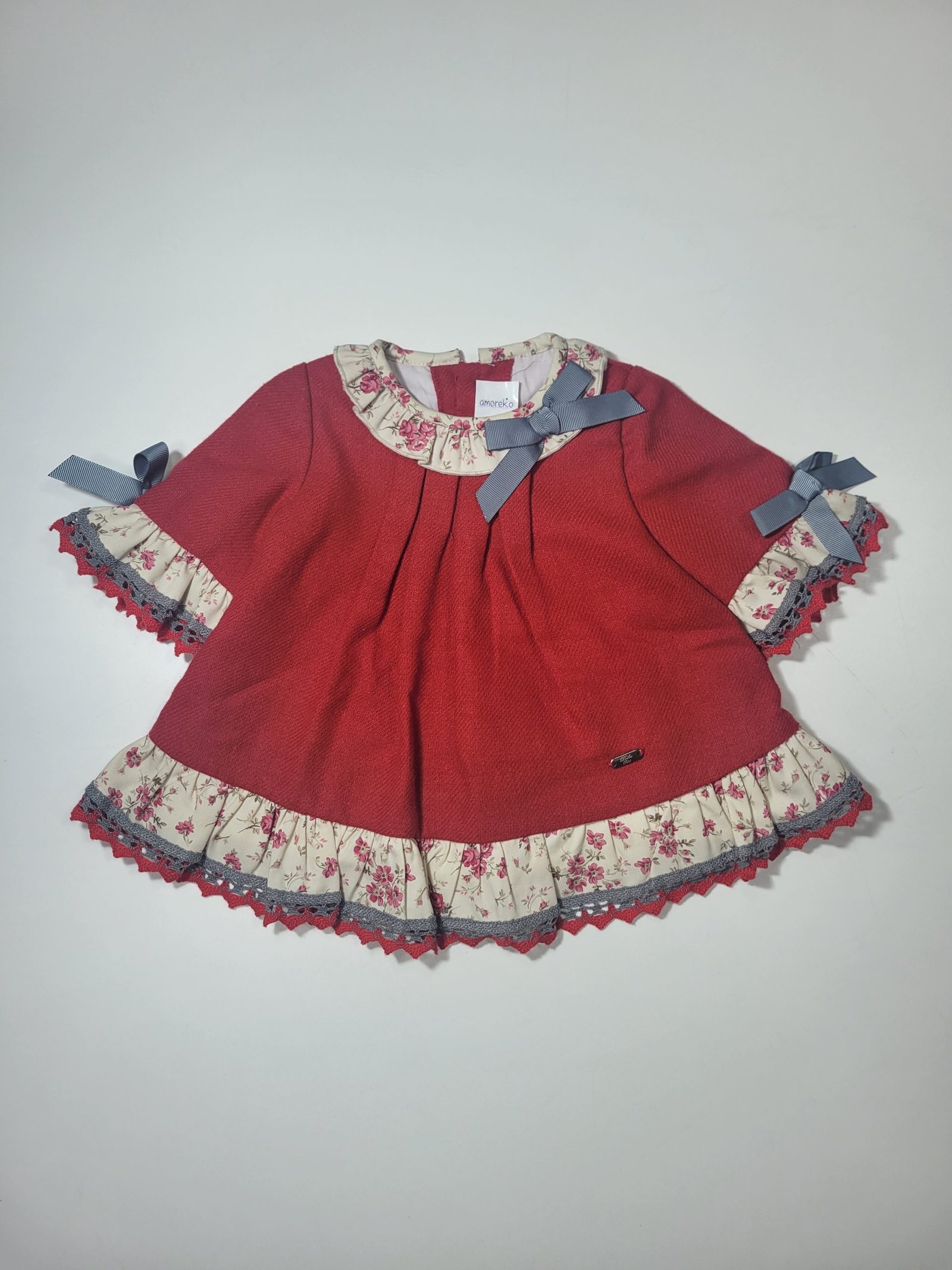 Vestido Vermelho com Padrão Floral e Laços Decorativos