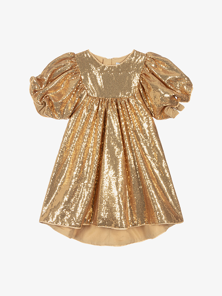 Vestido Dourado com Mangas Volumosas