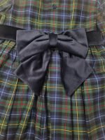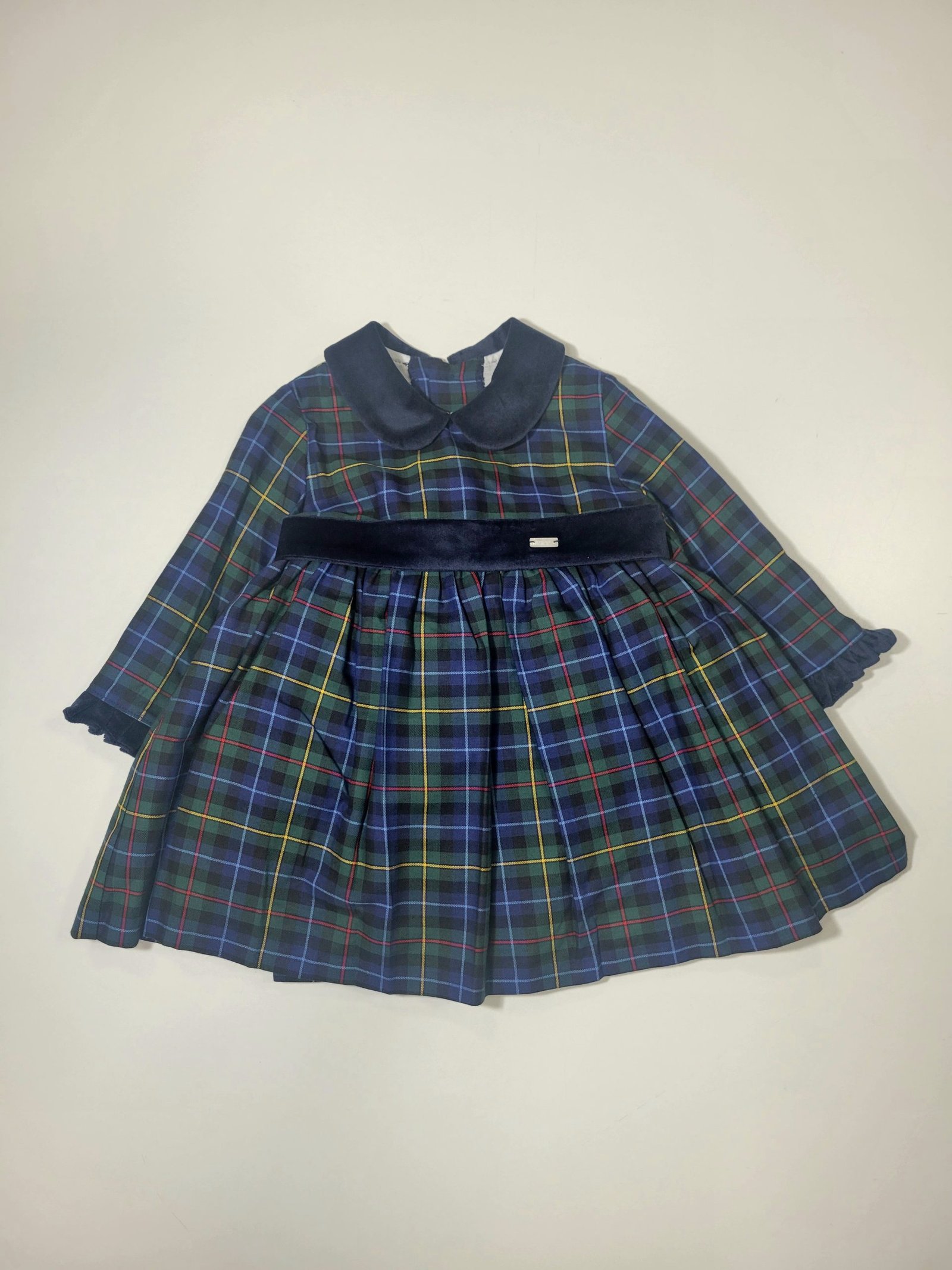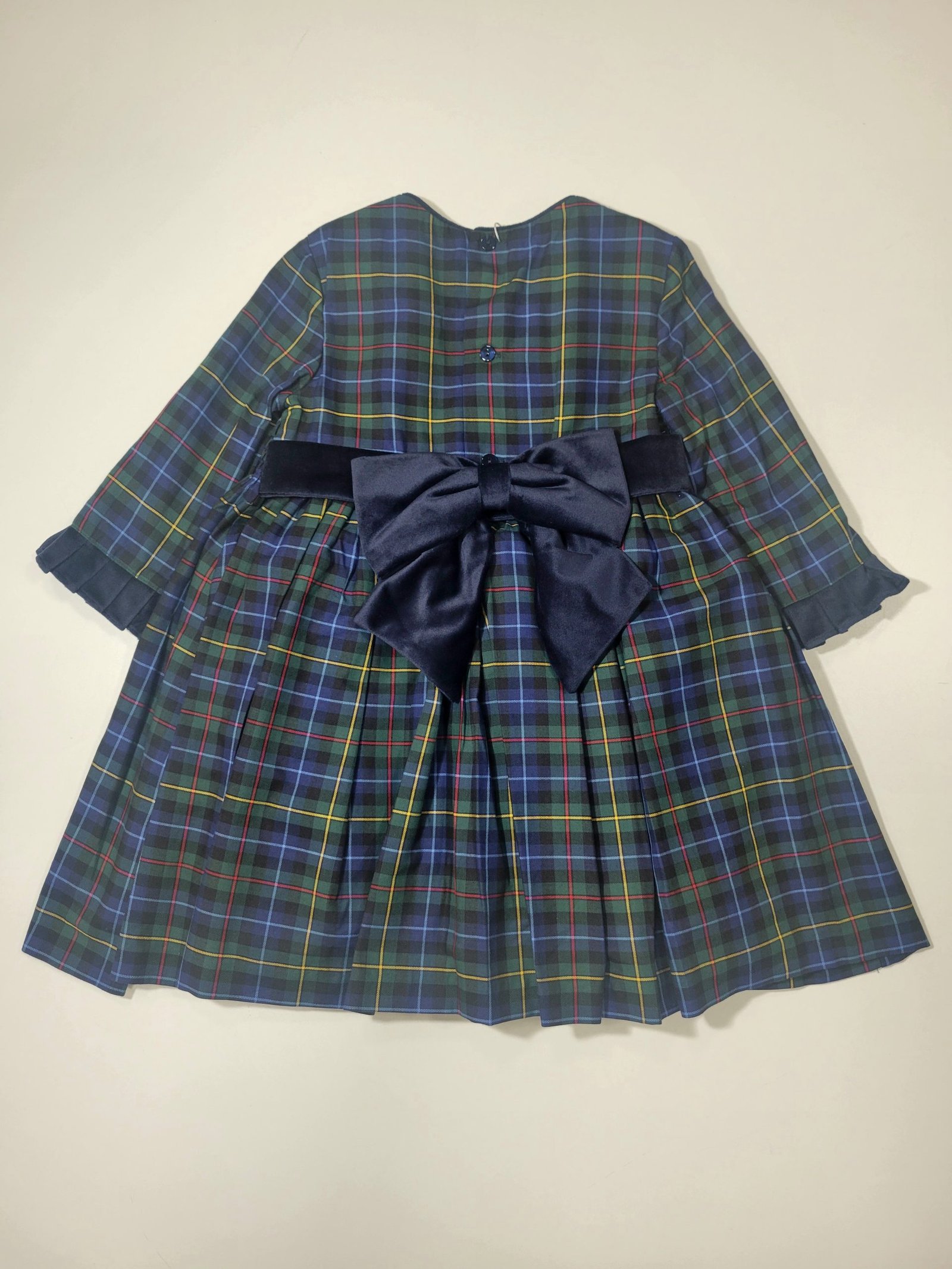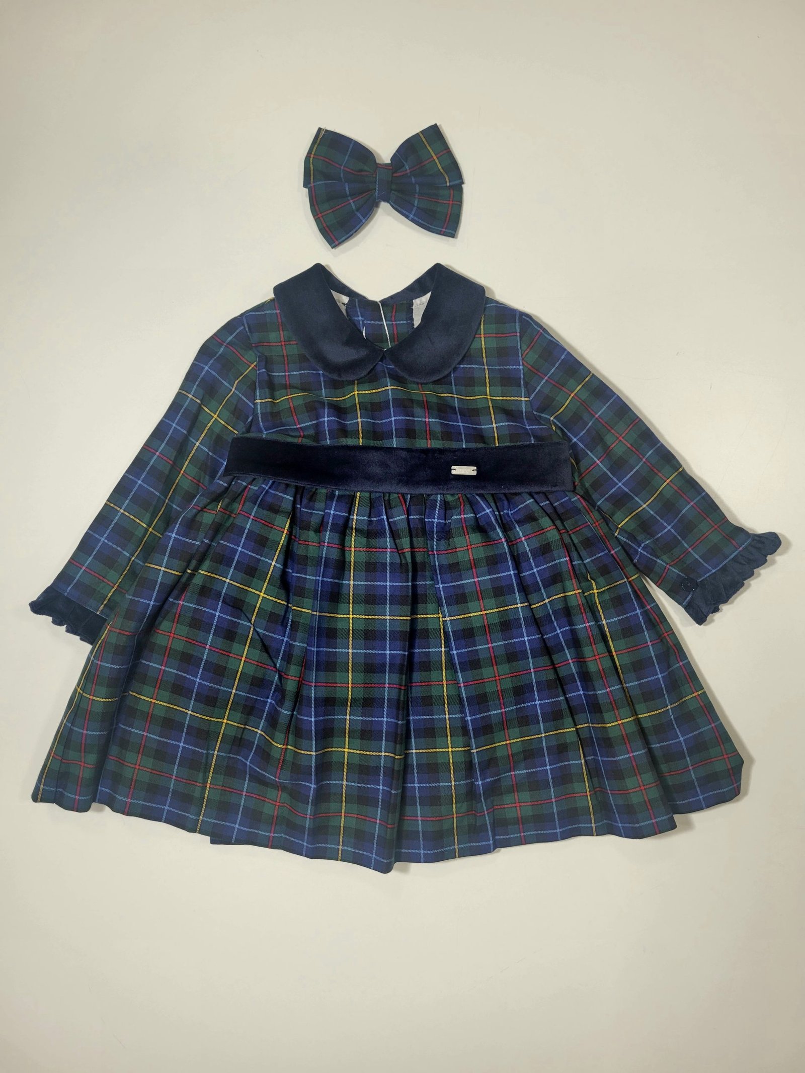 Vestido Azul-Marinho com Padrão Xadrez em Listras Verdes